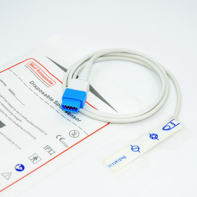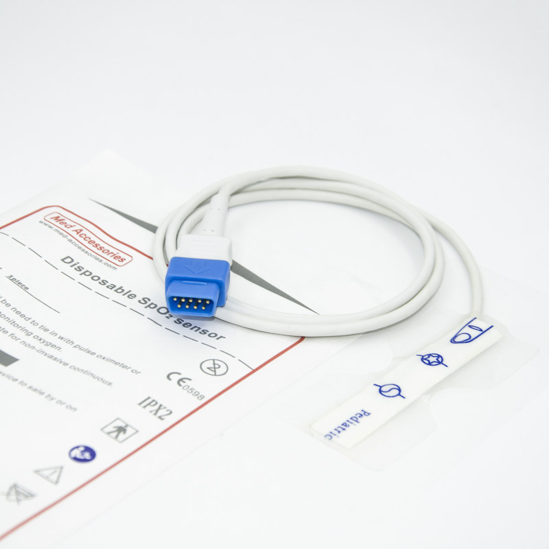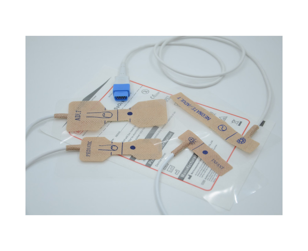Der Wegwerf-Spo2-Sensor besteht aus einer Sonde, eine kleine und leichte Vorrichtung, die an den Finger oder den Ohrläppchen des Patienten befestigt wird.Die Sonde strahlt Licht aus und misst die Sauerstoffmenge im Blut, basierend auf der LichtabsorptionEs ist eine entscheidende Komponente für die Bereitstellung genauer und zuverlässiger Messwerte.
