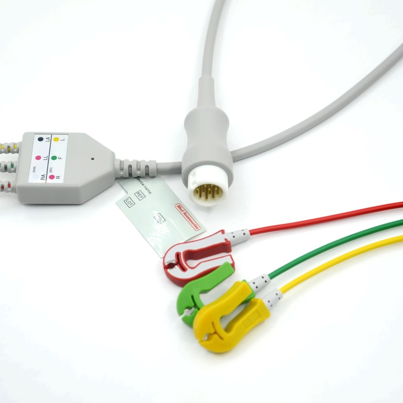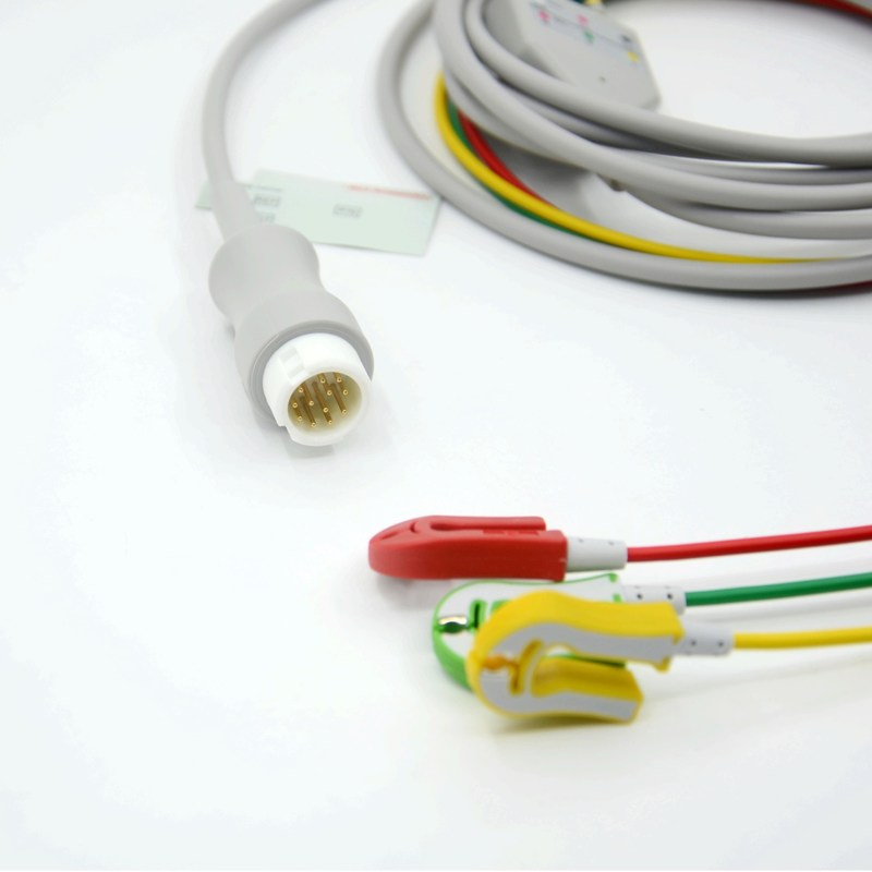 2. Leiterkonfiguration: EKG-Kabel sind so konzipiert, dass sie je nach Anzahl der für Überwachungs- oder Diagnosezwecke erforderlichen Leitungen unterschiedliche Leiterkonfigurationen aufnehmen.Zu den gängigen Leiterkonfigurationen gehören 3 LeiterJede Konfiguration entspricht einer spezifischen Elektrodenplatzierung, um eine andere Sicht auf die elektrische Aktivität des Herzens zu erfassen.