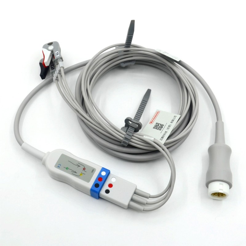 Das EKG-Kabel besteht typischerweise aus mehreren Anschlussdrähten mit spezifischen Steckern an einem Ende, die an den Elektroden befestigt werden, die am Körper des Patienten angebracht sind. Das andere Ende des Kabels wird mit dem EKG-Gerät oder -Monitor verbunden. Das Kabel leitet die elektrischen Signale, die von der Herzaktivität erzeugt werden, von den Elektroden zum Gerät, wodurch das Gerät die EKG-Wellenform des Patienten anzeigen und aufzeichnen kann.